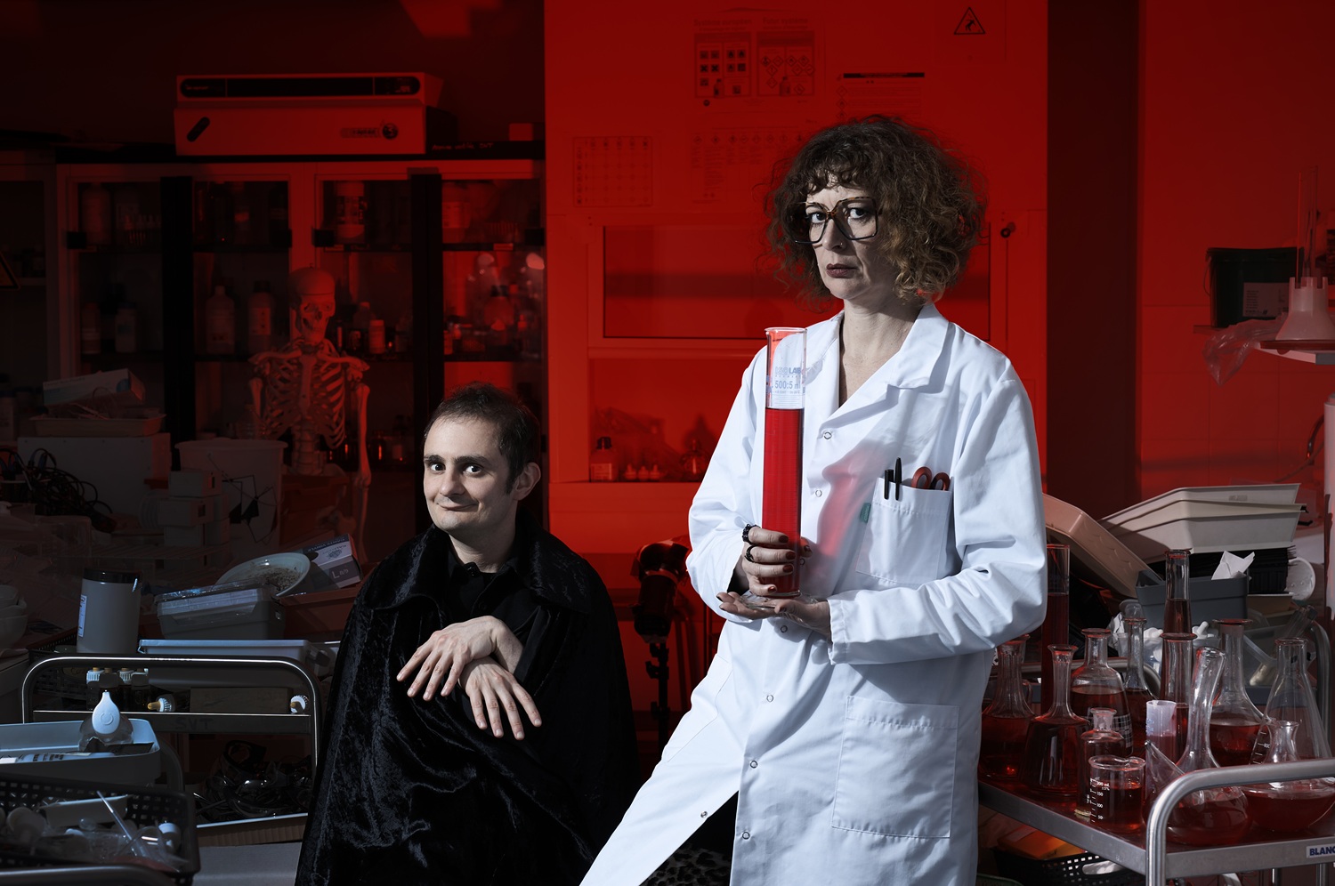 Lucien Mortimare, un vampire de huit ans, vient demander son aide à Professeure Sangria, une scientifique spécialiste du sang. Car Lucien a un gros problème : il n’aime plus le sang. Et sans le sang, il s’ennuie sévère. Au cœur de la nuit, dans ce laboratoire, Lucien et Sangria s’affrontent jusqu’à parvenir à un mystérieux pacte…
